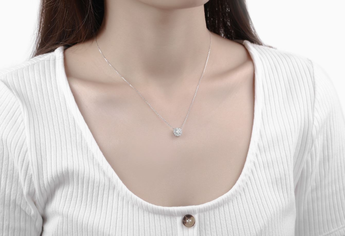 Lab Grown Round brilliant cut halo pendant