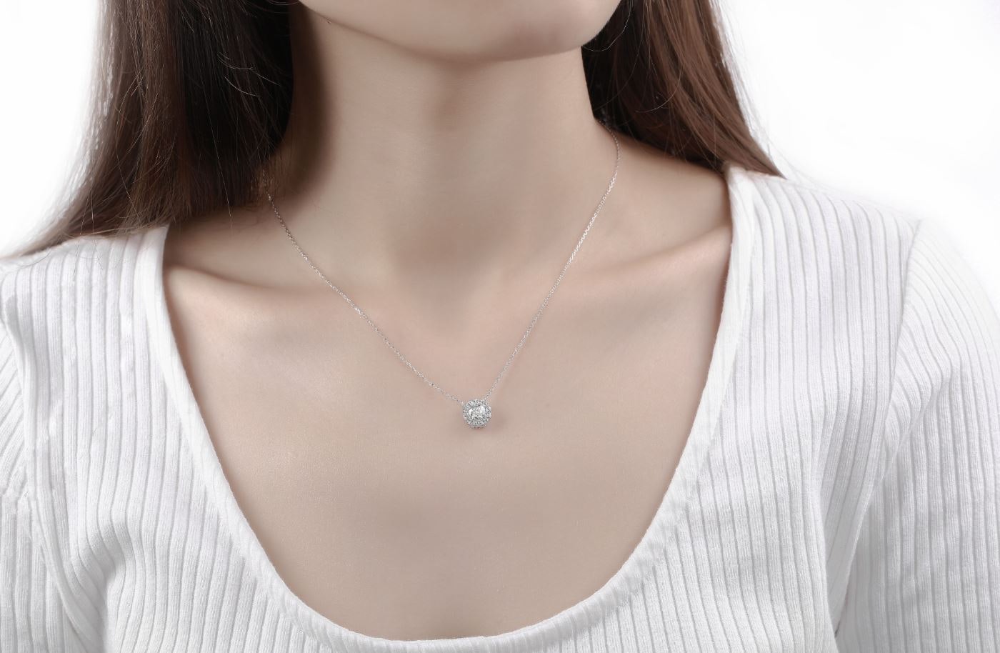 Lab Grown Round brilliant cut halo pendant