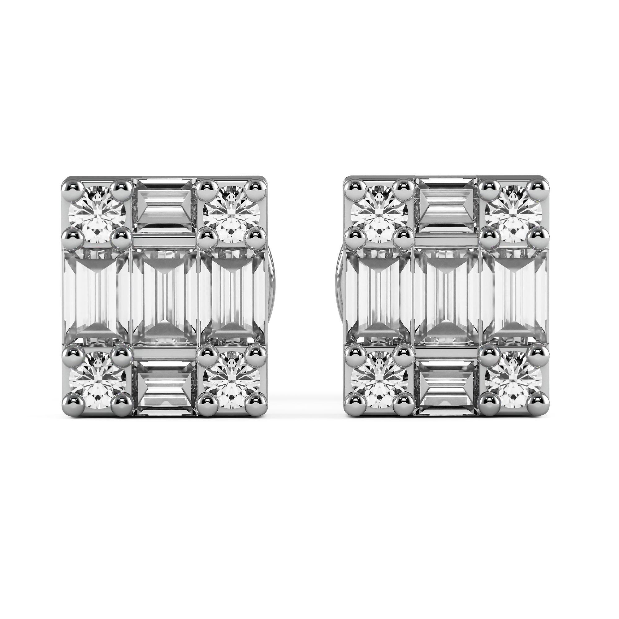 Art-deco cluster set with baguettes and round brilliant cuts.