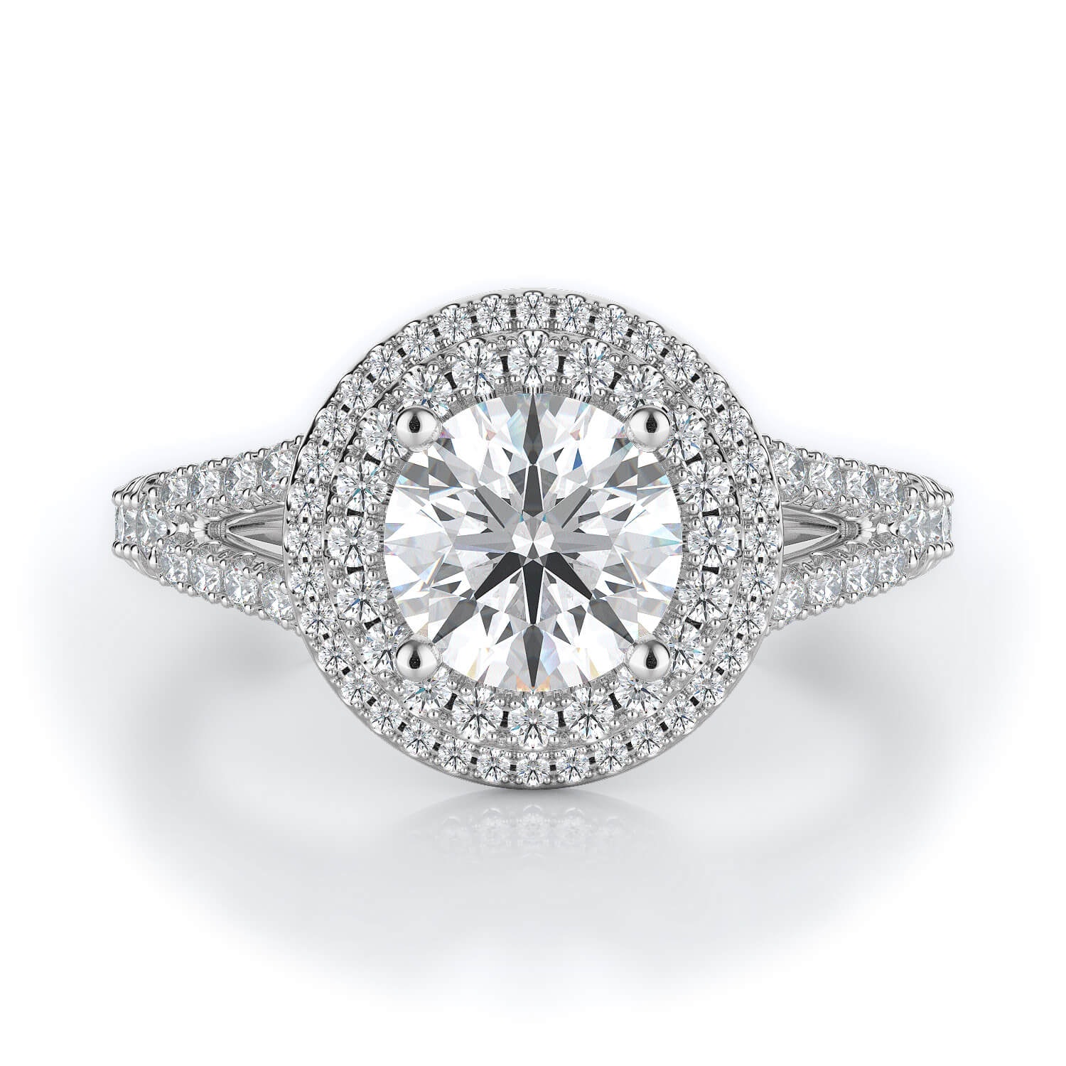 - Round diamond halo for enhanced visual impact