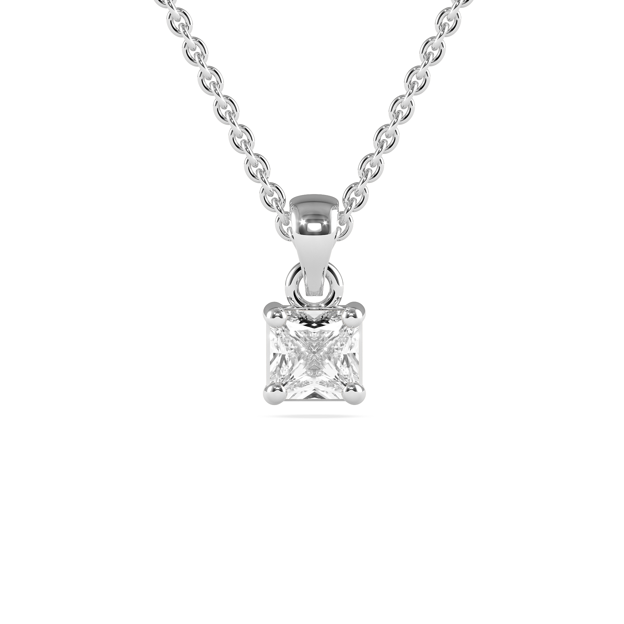 Our classic four claw solitaire pendant set with a Cushion Cut Diamond.