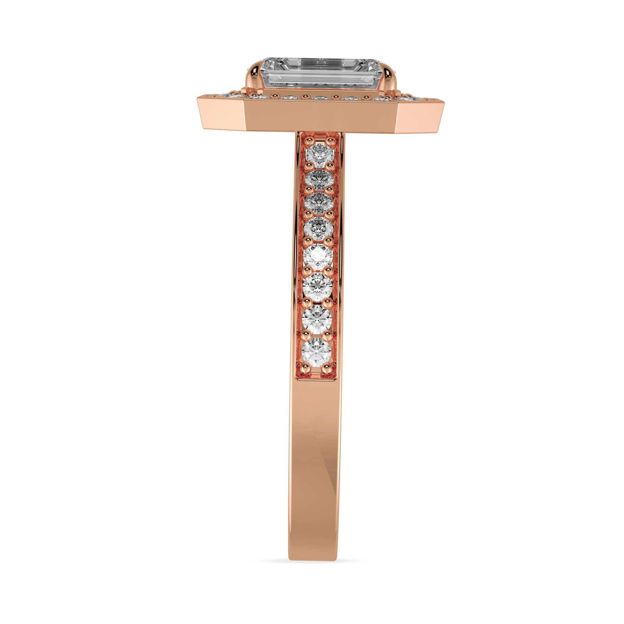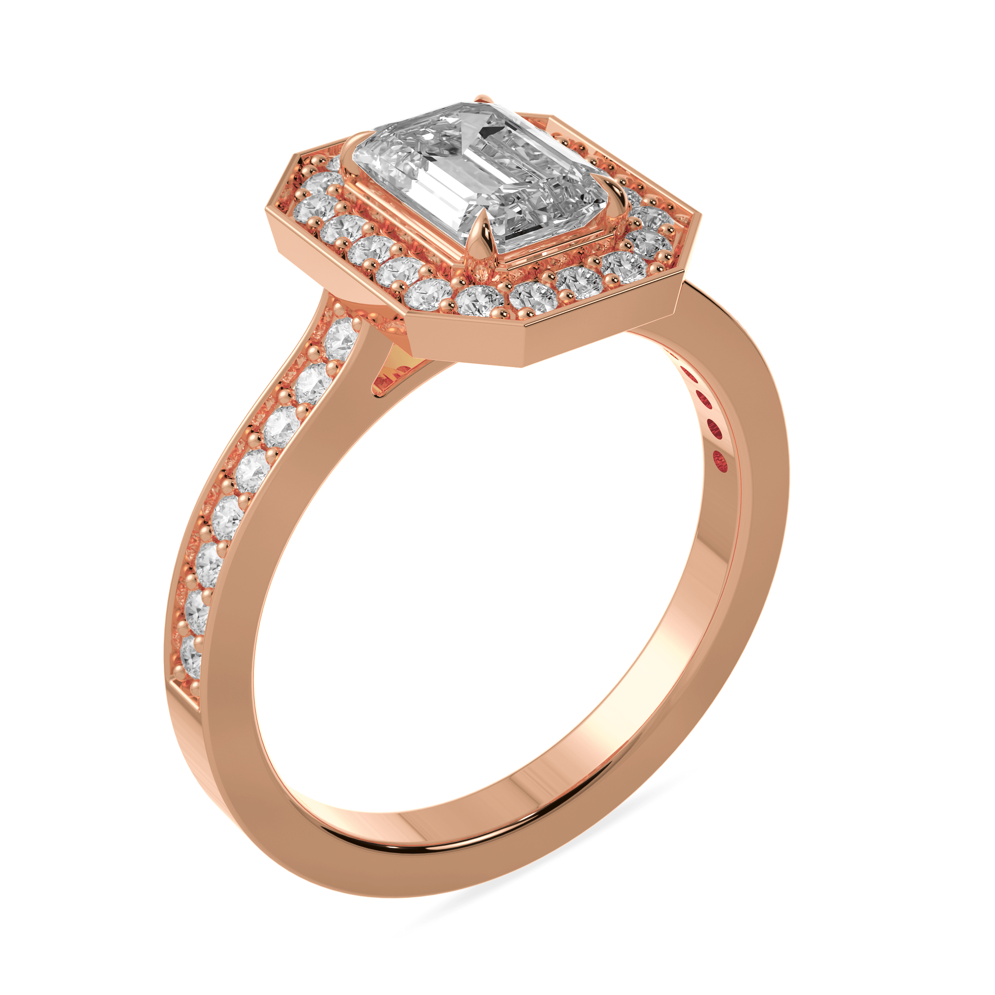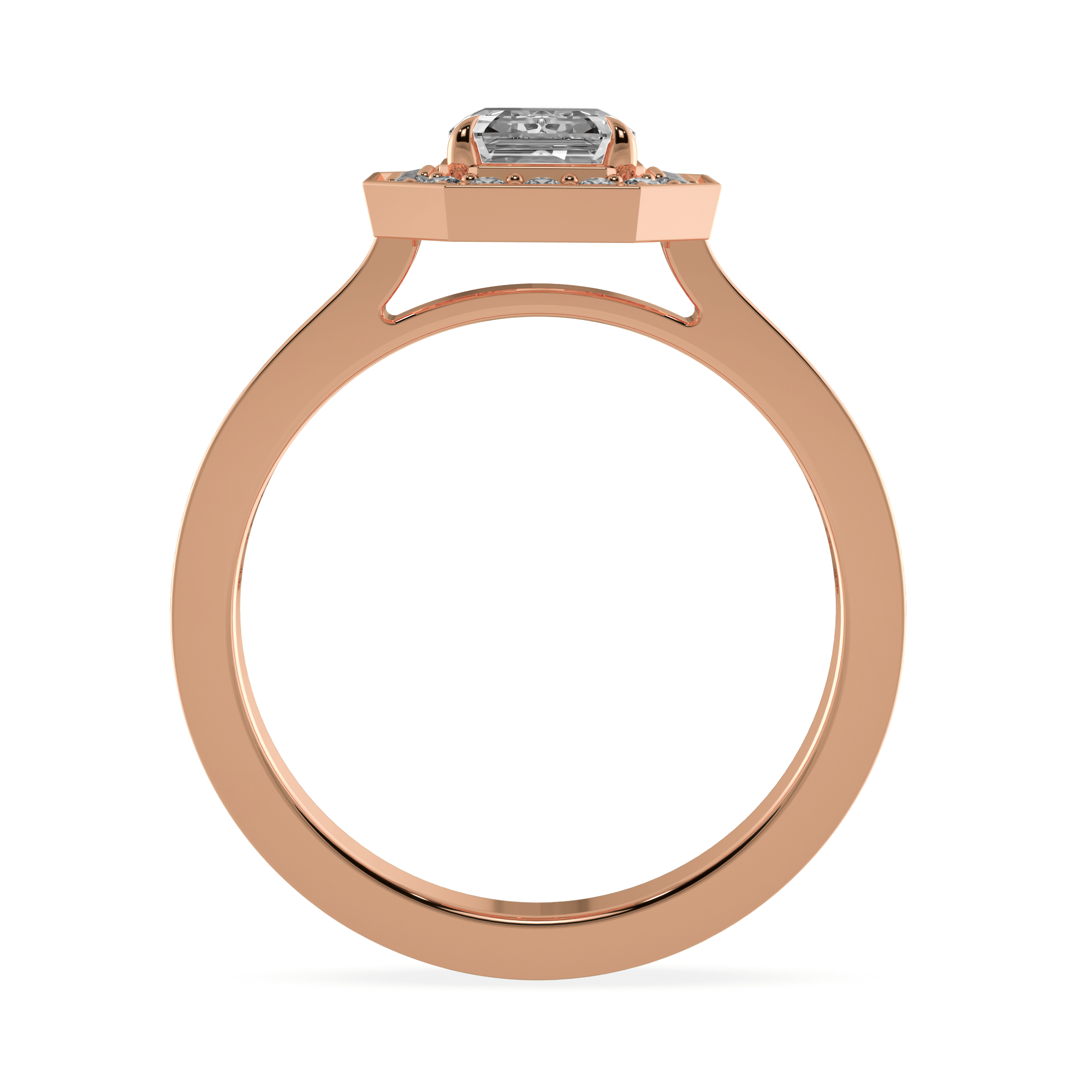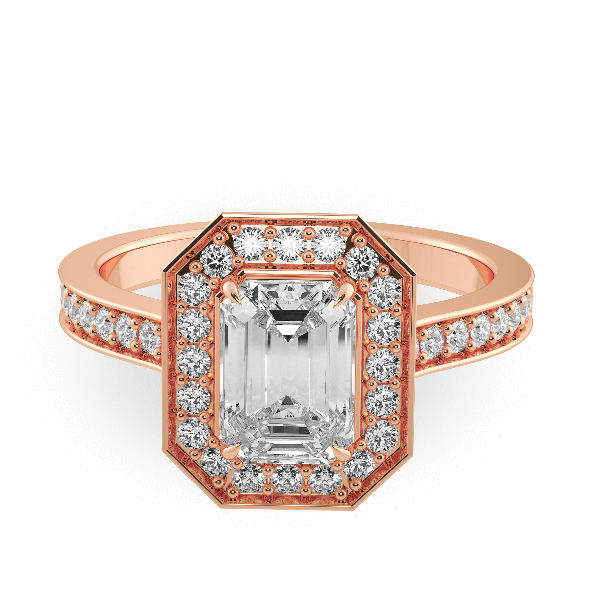 Price is for setting only.Emerald cut diamond set in millgrain halo with diamond split band.