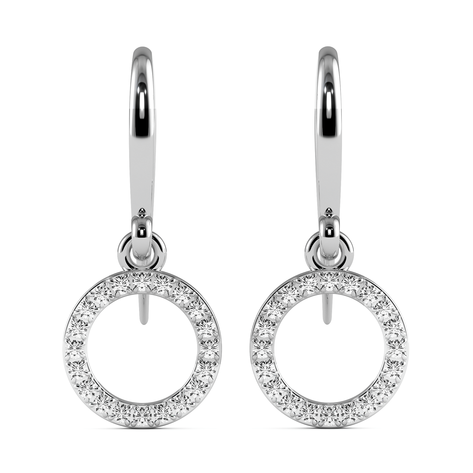 Grain set circle diamond drop earrings.