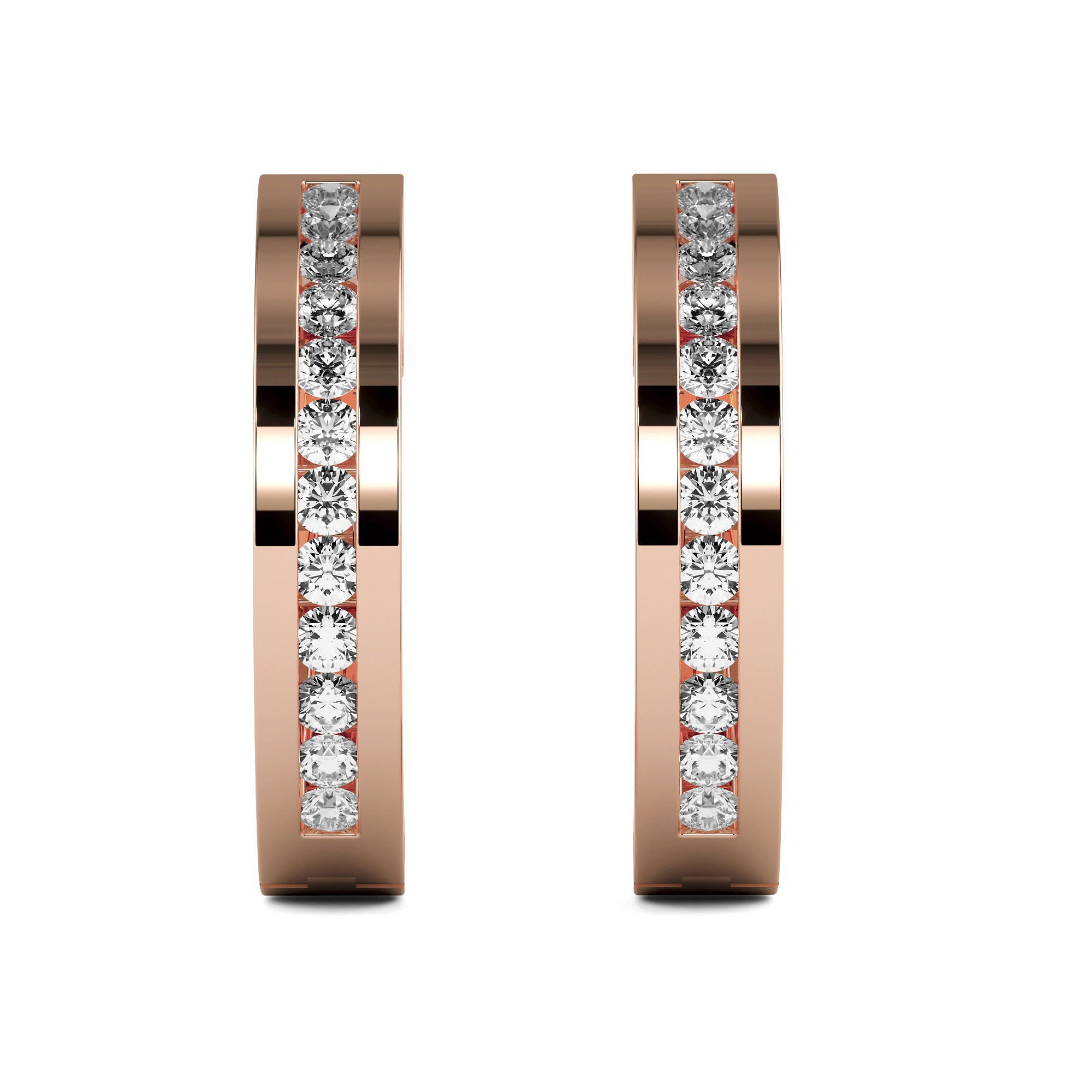 Classic channel set round brilliant cut huggies.