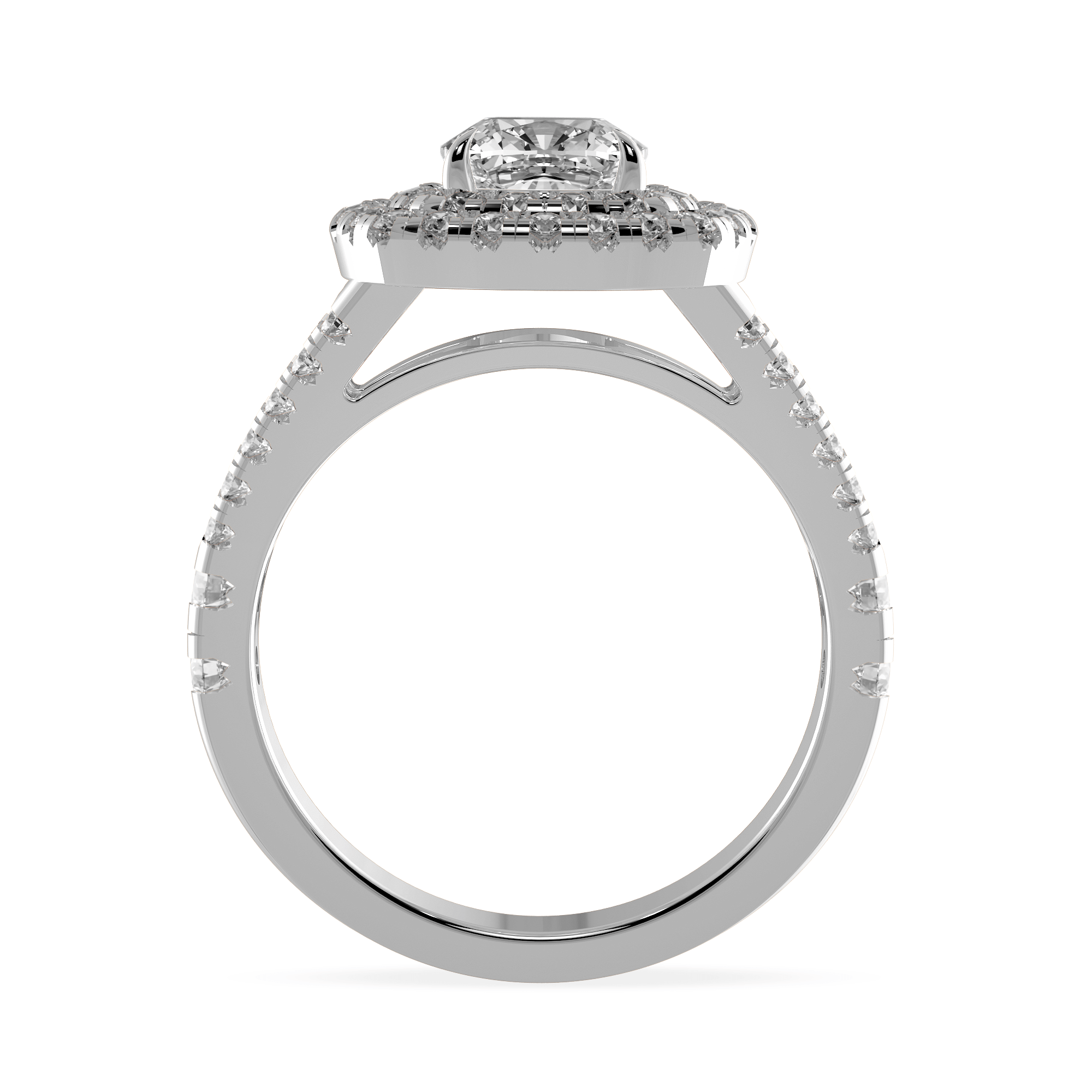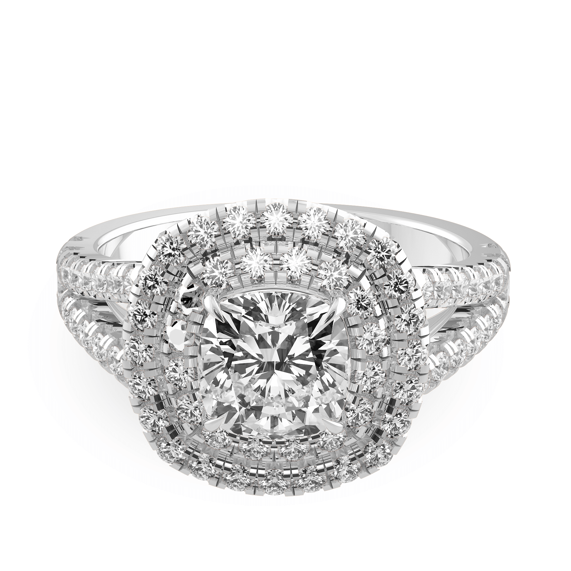 Price is for setting only.Double halo set with a cushion cut diamond with split band.