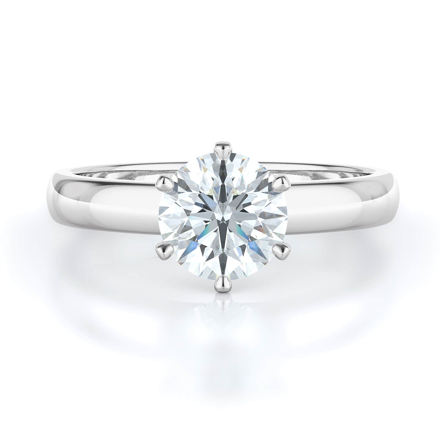 Elegant in its simplicity, the Zita setting is a refined solitaire design featuring a graceful six-claw crown and a clean, polished band. Designed to elevate your chosen diamond, the Zita allows for exceptional light exposure while maintaining a secure and timeless silhouette. Its slightly raised setting ensures compatibility with most wedding bands.